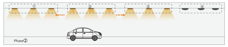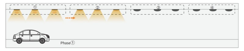 2.車がGroup2に移動すると、Group2センサーは次のGroup1とGroup3をアクティブにします。他のライトはまだオフです。